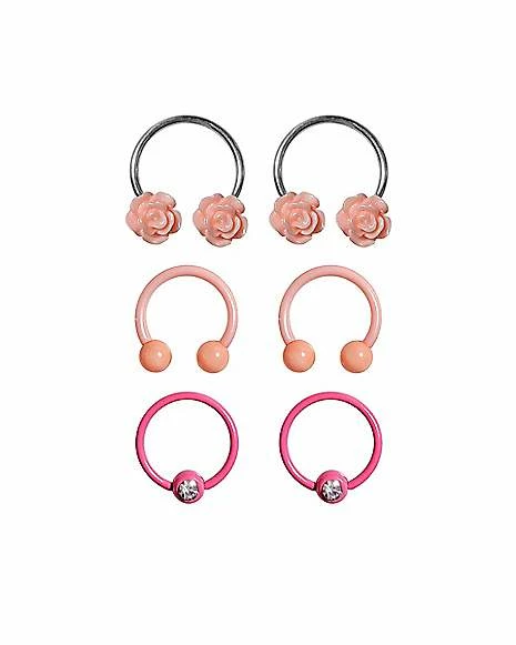 Hot Sale π Multi-Pack Pink Rose Horseshoe Rings 3 Pair – 16 Gauge π