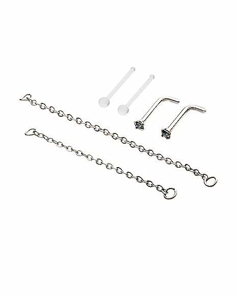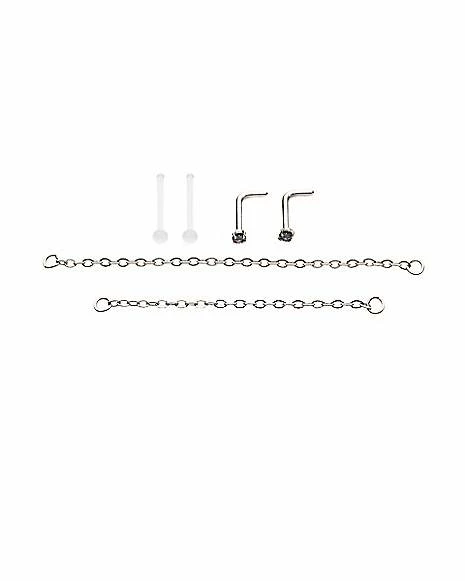 Brand new βοΈ Multi-Pack Prong Black CZ L-Bend Nose Rings and Nose Chains 2 Pair – 18 Gauge π