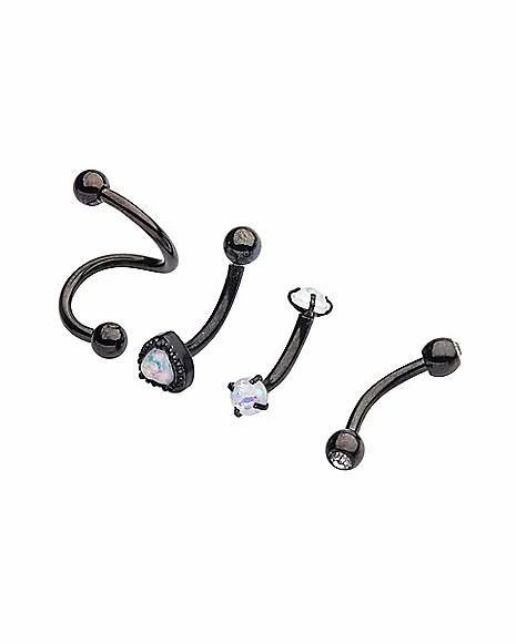 Wholesale ✔️ Multi-Pack Prong CZ Black Curved Barbells and Spiral Barbell 4 Pack – 16 Gauge ❤️