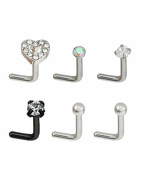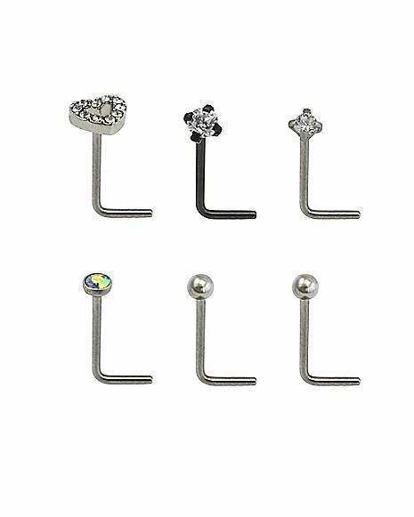 Deals ❤️ Multi-Pack Prong CZ Heart L-Bend Nose Rings 6 Pack – 20 Gauge 🤩