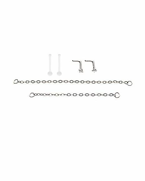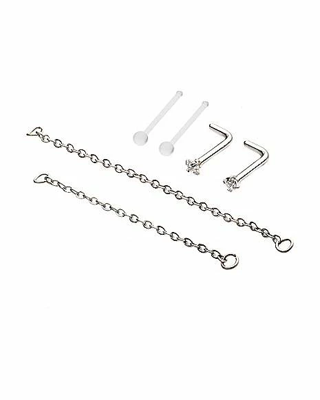 Best Sale π€© Multi-Pack Prong CZ L-Bend Nose Rings and Nose Chains 2 Pair – 18 Gauge π