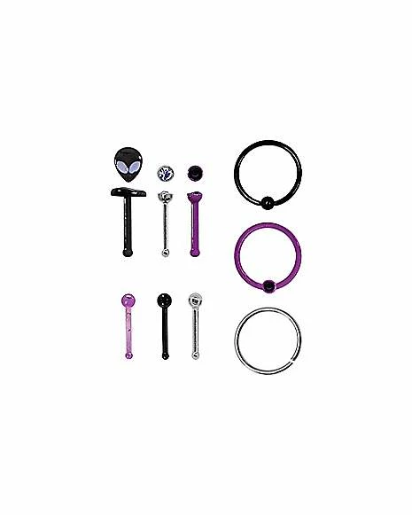 Cheapest π Multi-Pack Purple and Black Alien Bone and Hoop Nose Rings 9 Pack – 20 Gauge π