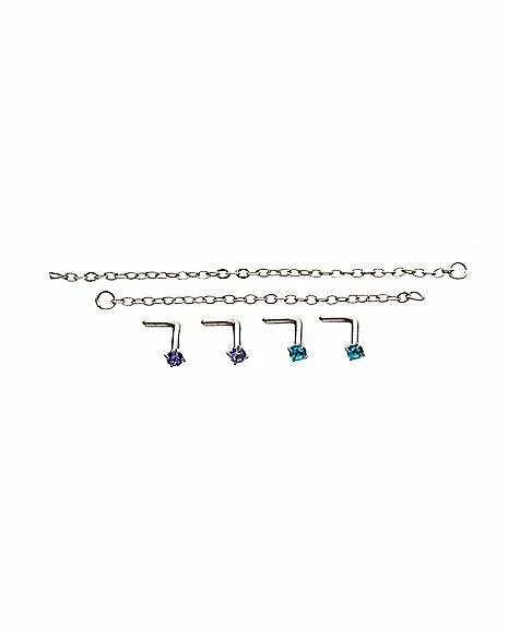 Hot Sale π₯° Multi-Pack Purple and Blue L-Bend Nose Rings and Nose Chains 4 Pack – 18 Gauge β