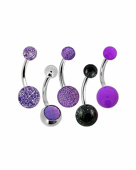 Outlet π― Multi-Pack Purple Glitter Acrylic Belly Rings 5 Pack – 14 Gauge β