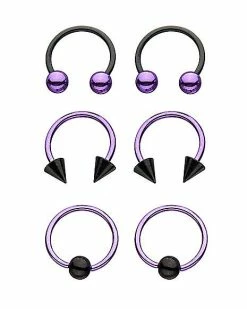 Flash Sale π Multi-Pack Purple Spike Horseshoe Rings and Captive Rings 3 Pair – 18 Gauge π