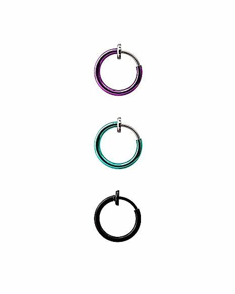 Coupon π Multi-Pack Purple Teal and Black Fake Hoop Earrings – 3 Pack βοΈ