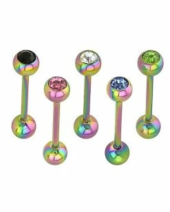 Deals ⭐ Multi-Pack Rainbow Colored CZ Barbells 5 Pack – 14 Gauge ✔️
