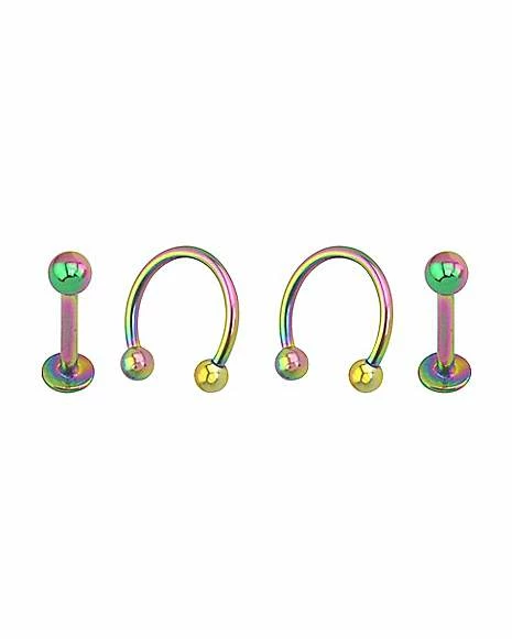 Best reviews of π₯ Multi-Pack Rainbow Plated Horseshoe and Labret Lip Rings 4 Pack – 16 Gauge π