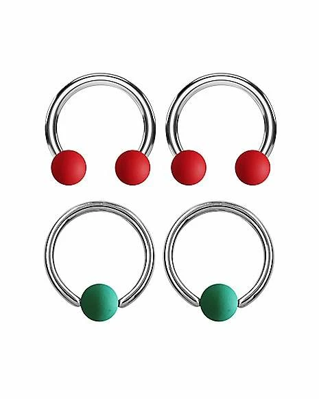 Top 10 π Multi-Pack Red and Green Captive Bead and Horseshoe Rings 4 Pack – 16 Gauge π