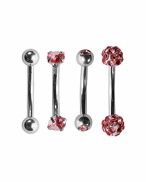 Cheap 𧨠Multi-Pack Red Pave CZ Curved Barbells 4 Pack – 16 Gauge βοΈ