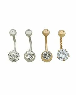 Discount β Multi-Pack Rose Goldtone CZ Belly Rings 4 Pack – 14 Gauge π