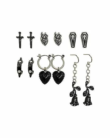 Outlet βοΈ Multi Pack Rose Heart Spike Coffin Hoop Dangle and Stud Earrings – 6 Pack π₯°