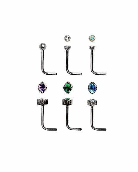 Best Sale π Multi-Pack Round and Oval CZ L-Bend Nose Rings 6 Pack – 20 Gauge π