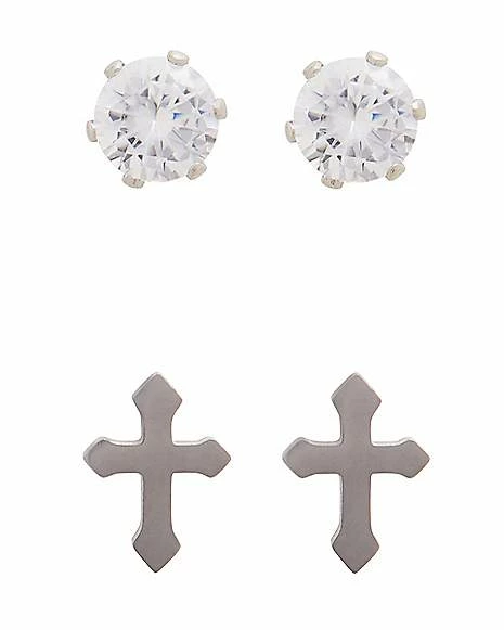 Brand new π₯ Multi-Pack Round CZ and Cross Stud Earrings – 2 Pair β