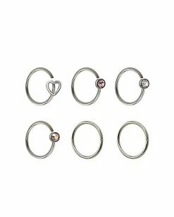 Cheapest β Multi-Pack Round CZ and Heart Hoop Nose Rings 6 Pack – 20 Gauge π