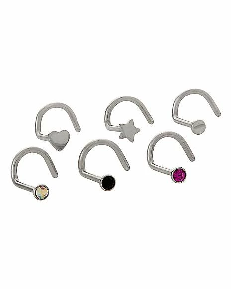 Promo π Multi-Pack Round CZ Heart and Star Screw Nose Rings 6 Pack – 20 Gauge βοΈ