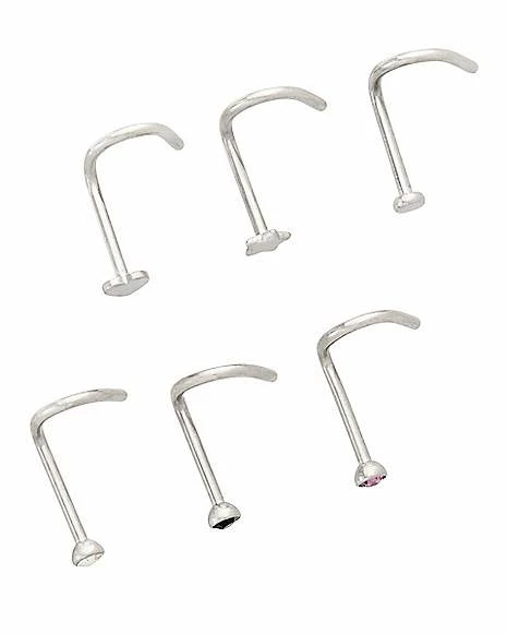 Flash Sale βοΈ Multi-Pack Silvertone CZ L-Bend Stud Nose Rings 6 Pack – 20 Gauge π