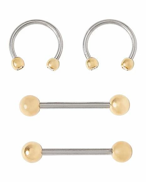 Coupon π Multi-Pack Silvertone and Goldtone Titanium Horseshoe Rings and Nipple Barbells 4 Pack – 14 and 16 Gauge π§¨