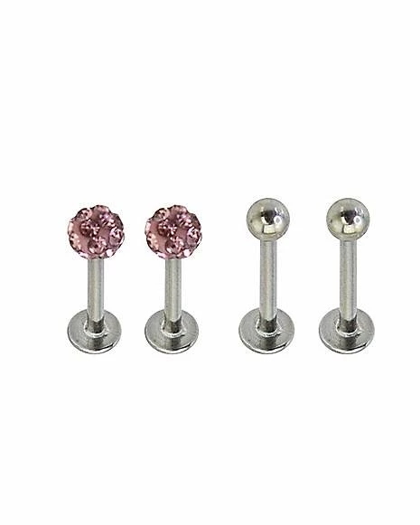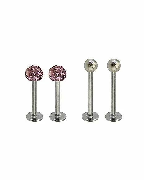 Promo π Multi-Pack Silvertone and Pink Labret Lip Rings 4 Pack – 16 Gauge π