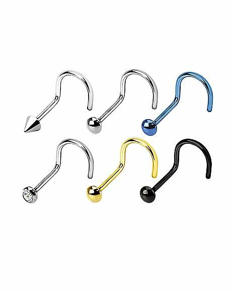 Discount π Multi-Pack Silvertone Goldtone Black Blue Screw Nose Rings 6 Pack – 20 Gauge β