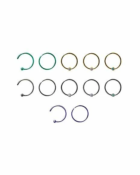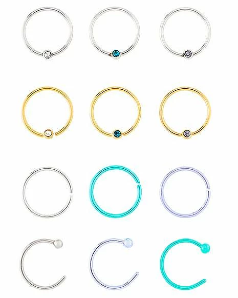 Best reviews of β Multi-Pack Silvertone Goldtone Multi-Color Hoop Nose Rings and Half Hoop Nose Rings 12 Pack – 20 Gauge π