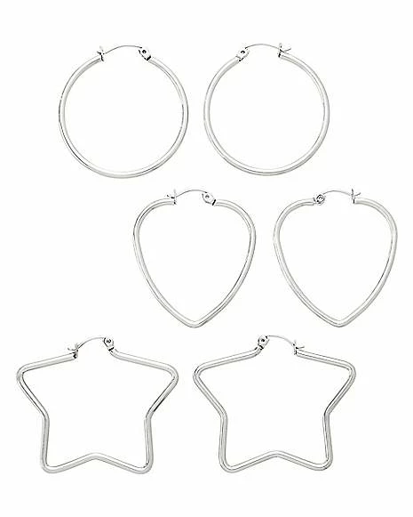 Discount π Multi-Pack Silvertone Heart Star and Hoop Earrings 3 Pair – 20 Gauge π