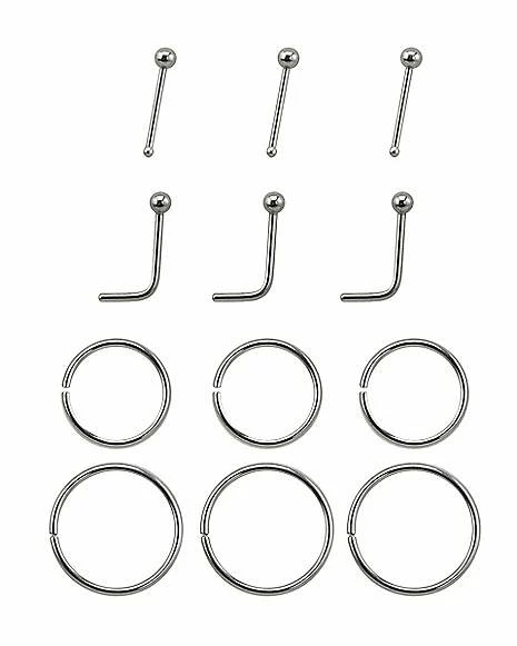 Coupon π Multi-Pack Silvertone Nose Pins and L-Bend Nose Rings and Hoop Nose Rings 12 Pack – 20 Gauge π