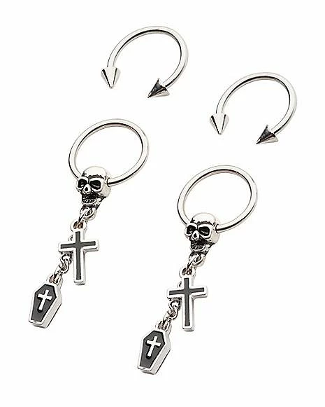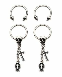 Discount β€οΈ Multi-Pack Skeleton Horseshoe Rings and Dangle Captive Rings 4 Pack – 16 Gauge π