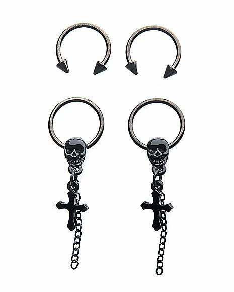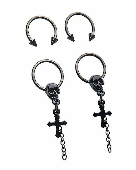 Promo π Multi-Pack Skull and Cross Horseshoe and Captive Rings 4 Pack – 16 Gauge π