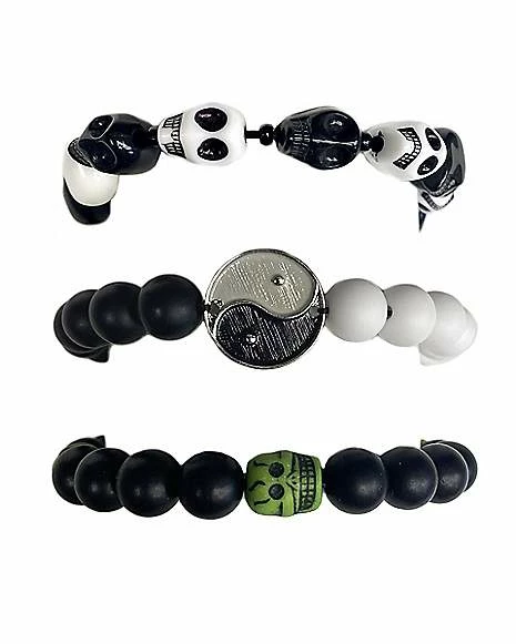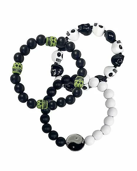 New ✔️ Multi-Pack Skull and Yin Yang Beaded Bracelets – 3 Pack 🥰