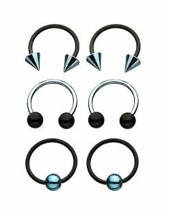 Wholesale β€οΈ Multi-Pack CZ Teal Hamsa Hand Horseshoe and Captive Rings 2 Pair – 16 Gauge π₯