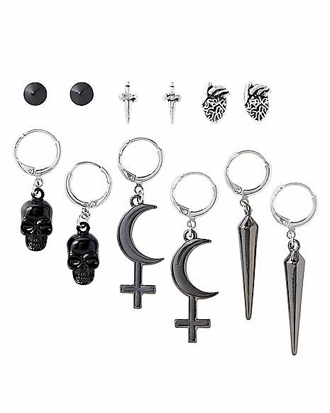 Budget 🎁 Multi-Pack Spike Skull Sword Stud and Dangle Earrings – 6 Pack 😉