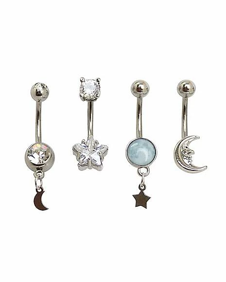 Cheap π Multi-Pack Star Moon CZ Dangle Belly Rings 4 Pack – 14 Gauge π₯°
