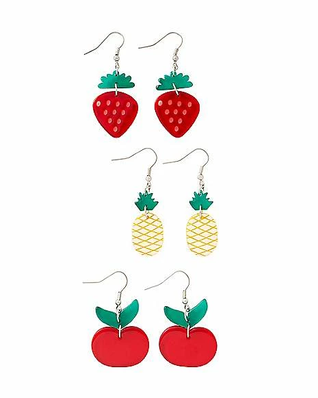 Cheapest ✔️ Multi-Pack Strawberry Apple Pineapple Dangle Earrings – 3 Pack 🤩