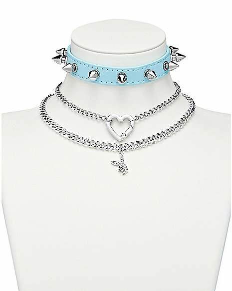 Wholesale π― Multi-Pack Studded Heart and Curb Chain Playboy Bunny Choker Necklaces – 3 Pack π§¨