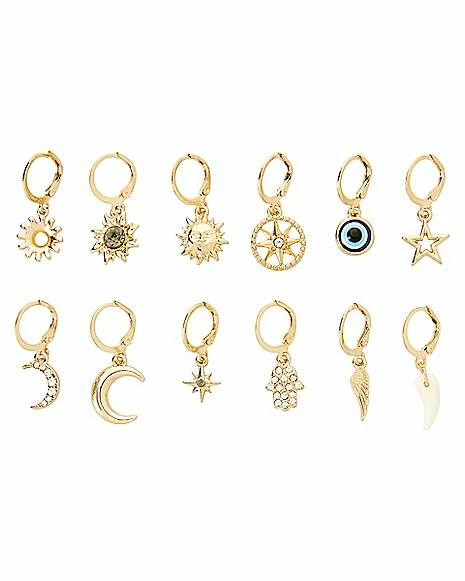 Promo 🧨 Multi-Pack Sun and Moon Mismatch Hoop Dangle Earrings – 12 Pack 🤩
