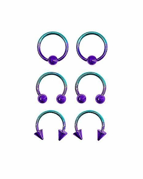 Best deal π Multi-Pack Teal and Purple Ombre Captive Bead and Horseshoe Rings 6 Pack – 16 Gauge π