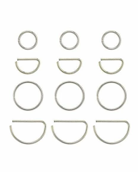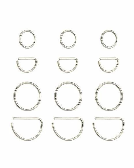 Budget π Multi-Pack Titanium Hoop and Half Hoop Nose Rings 12 Pack – 20 Gauge π§¨