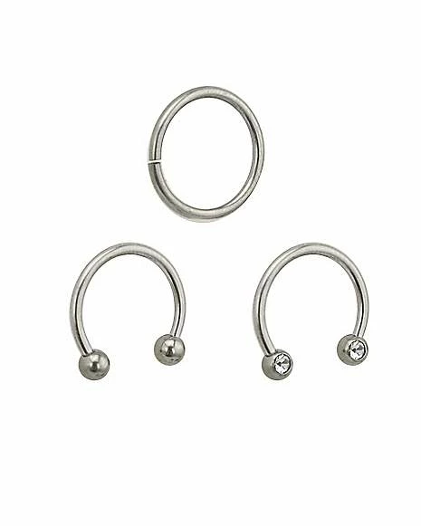Hot Sale ⭐ Multi-Pack Titanium Hoop and Horseshoe Rings 3 Pack – 16 Gauge ❤️