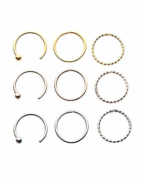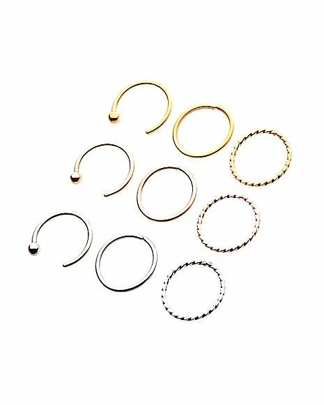 Buy π Multi-Pack Twist Hoop Nose Rings and Half Hoop Nose Rings 9 Pack – 20 Gauge β¨