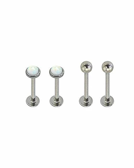 Deals βοΈ Multi-Pack White Opal-Effect Dimple Labret Lip Rings 4 Pack – 16 Gauge π