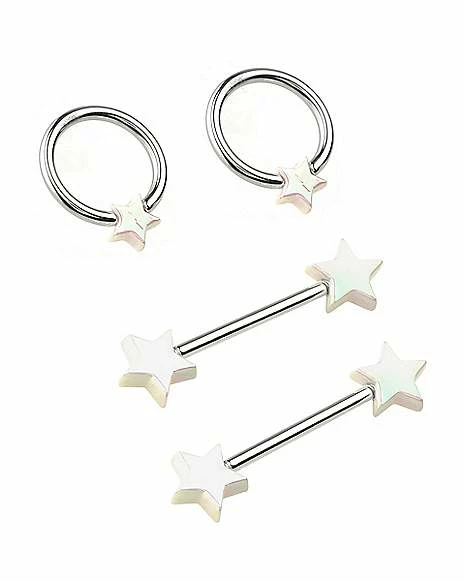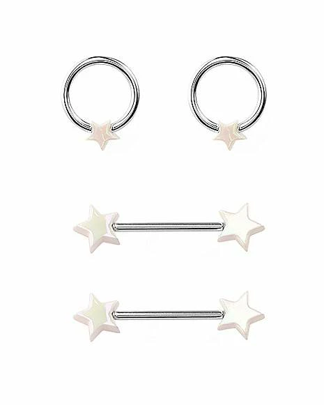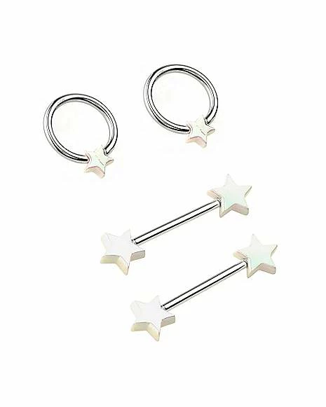 Cheapest π Multi-Pack White Star Captive Rings and Nipple Barbells 2 Pair – 14 Gauge π