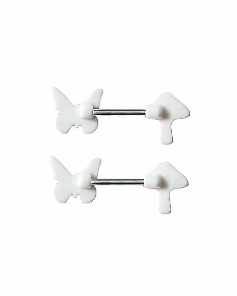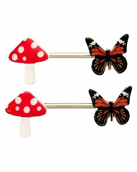 Hot Sale ✔️ Mushroom and Butterfly Nipple Barbells – 14 Gauge ✨