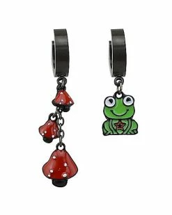 Cheap π Mushroom and Frog Dangle Huggie Hoop Earrings – 18 Gauge π