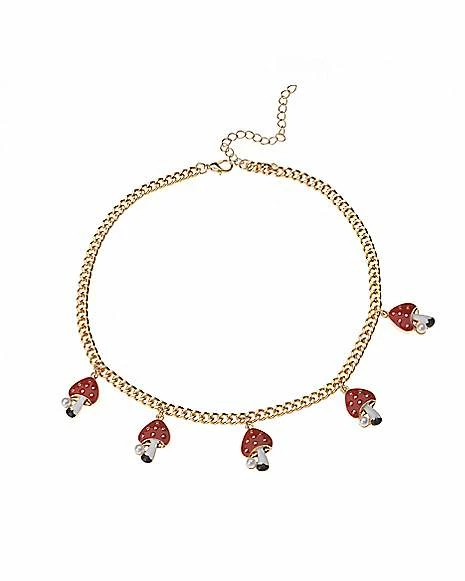 Best Sale βοΈ Mushroom and Pearl Effect Charm Choker Necklace π