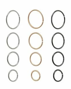 Top 10 👏 Multi-Pack Silvertone Goldtone and Black Seamless Hoop Nose Rings 12 Pack – 20 Gauge 👏