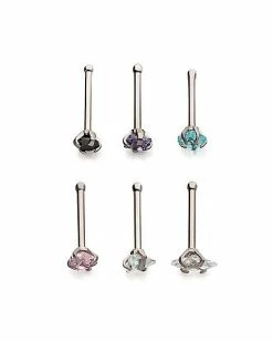 Outlet 😀 Multi-Pack Black Prong CZ Bone Nose Rings 6 Pack – 20 Gauge 🔥