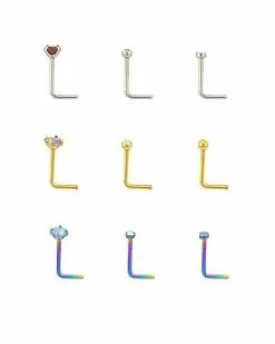 Deals 🎁 Multi-Pack Opal-Effect Goldplated L-Bend Nose Rings and Nose Chains 2 Pair – 18 Gauge 🧨