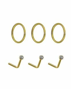 Buy 🎁 Multi-Pack CZ Pink Purple Clear Nose Pins and Hoop Nose Rings 6 Pack – 20 Gauge ✨
