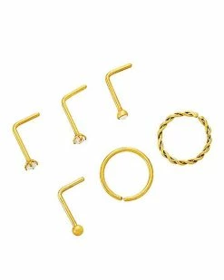 Cheap 👏 Multi-Pack Goldtone CZ Nose Rings 6 Pack – 20 Gauge 🤩